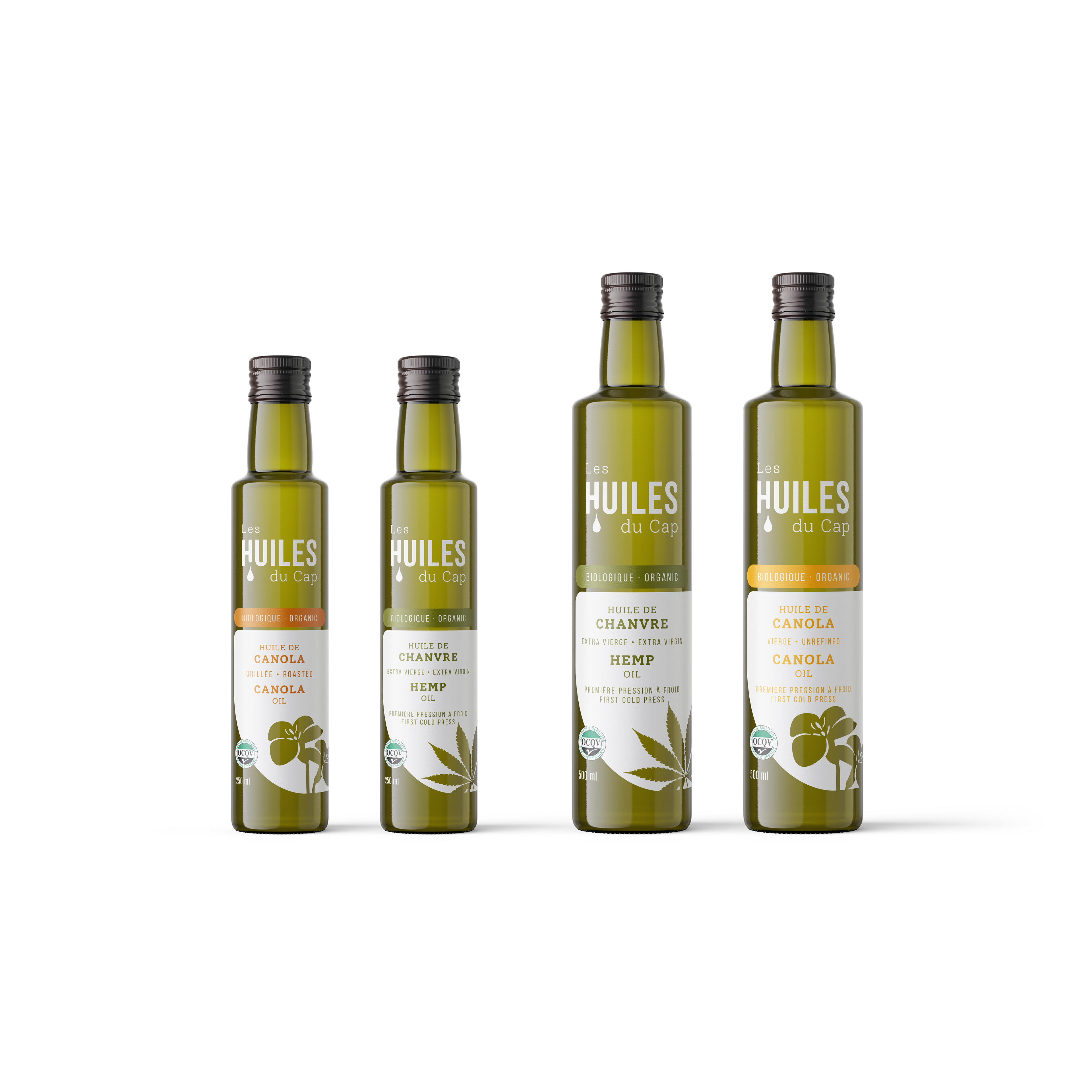 Conception de l’image de marque et de la gamme d’étiquettes pour les huiles de chanvre, canola et canola grillée