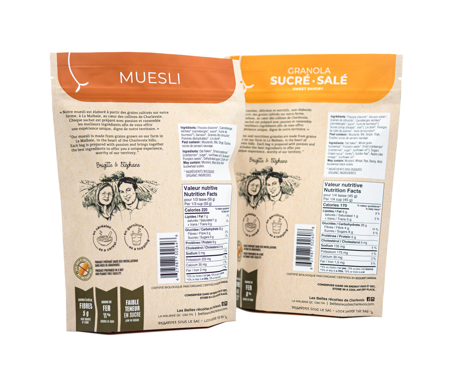 Création de toute la gamme de sacs pour grains, granolas et céréales!
