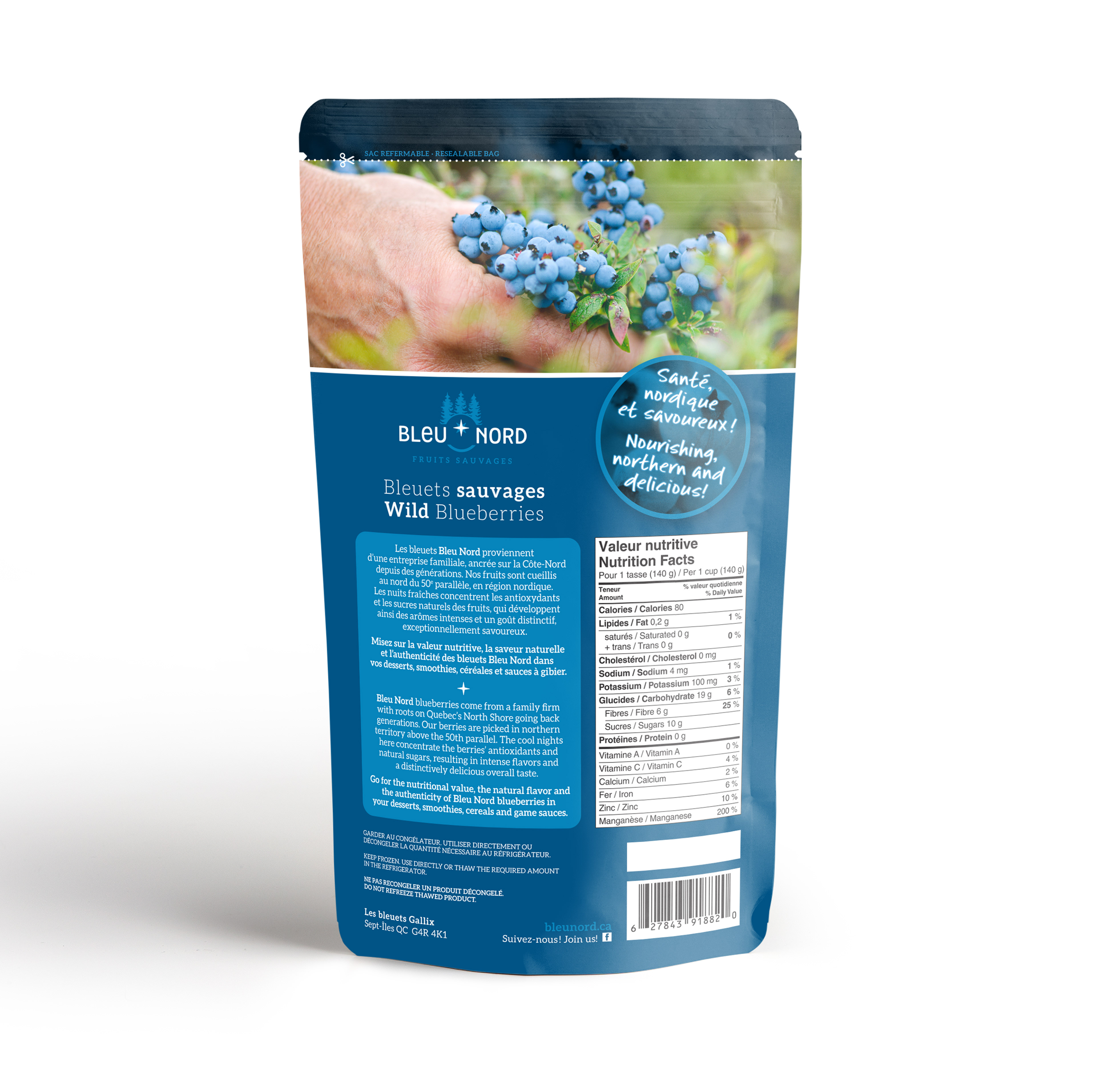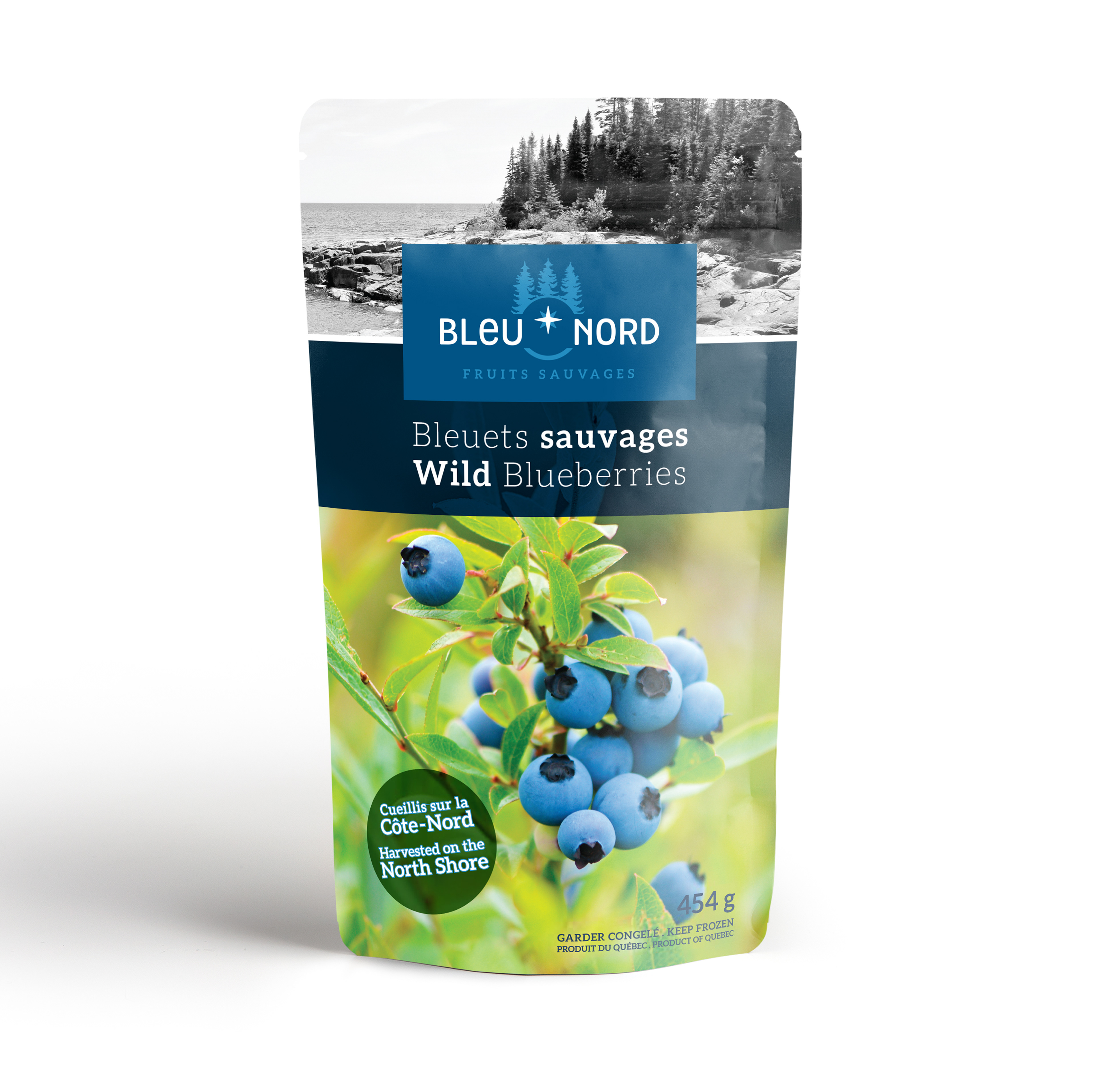 Création d’un sac de bleuets sauvages congelés de la Côte-Nord sous la marque Bleu Nord