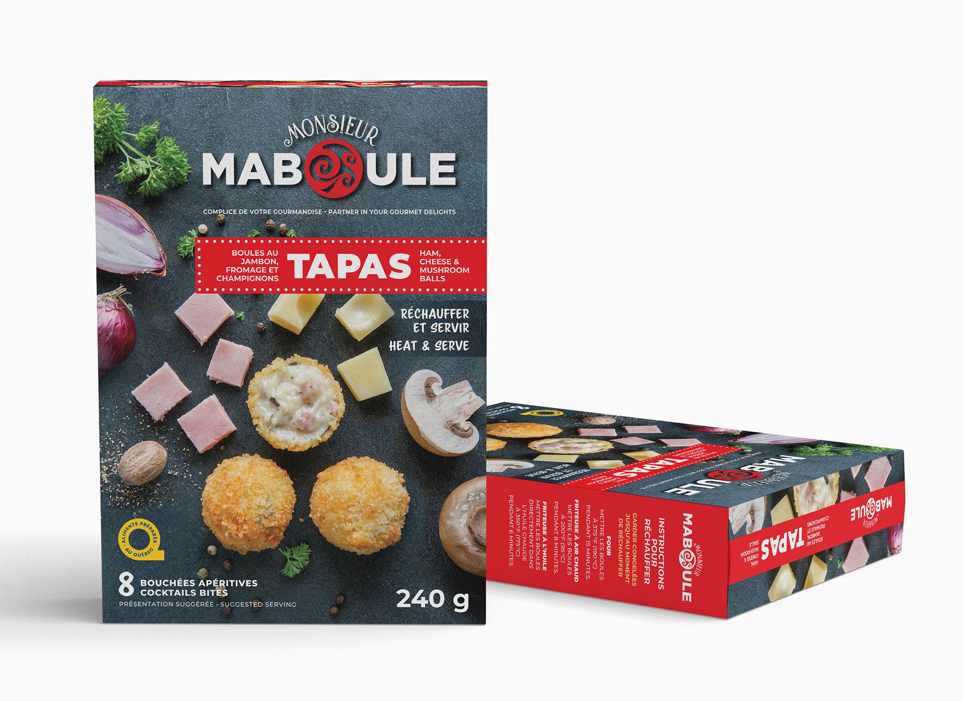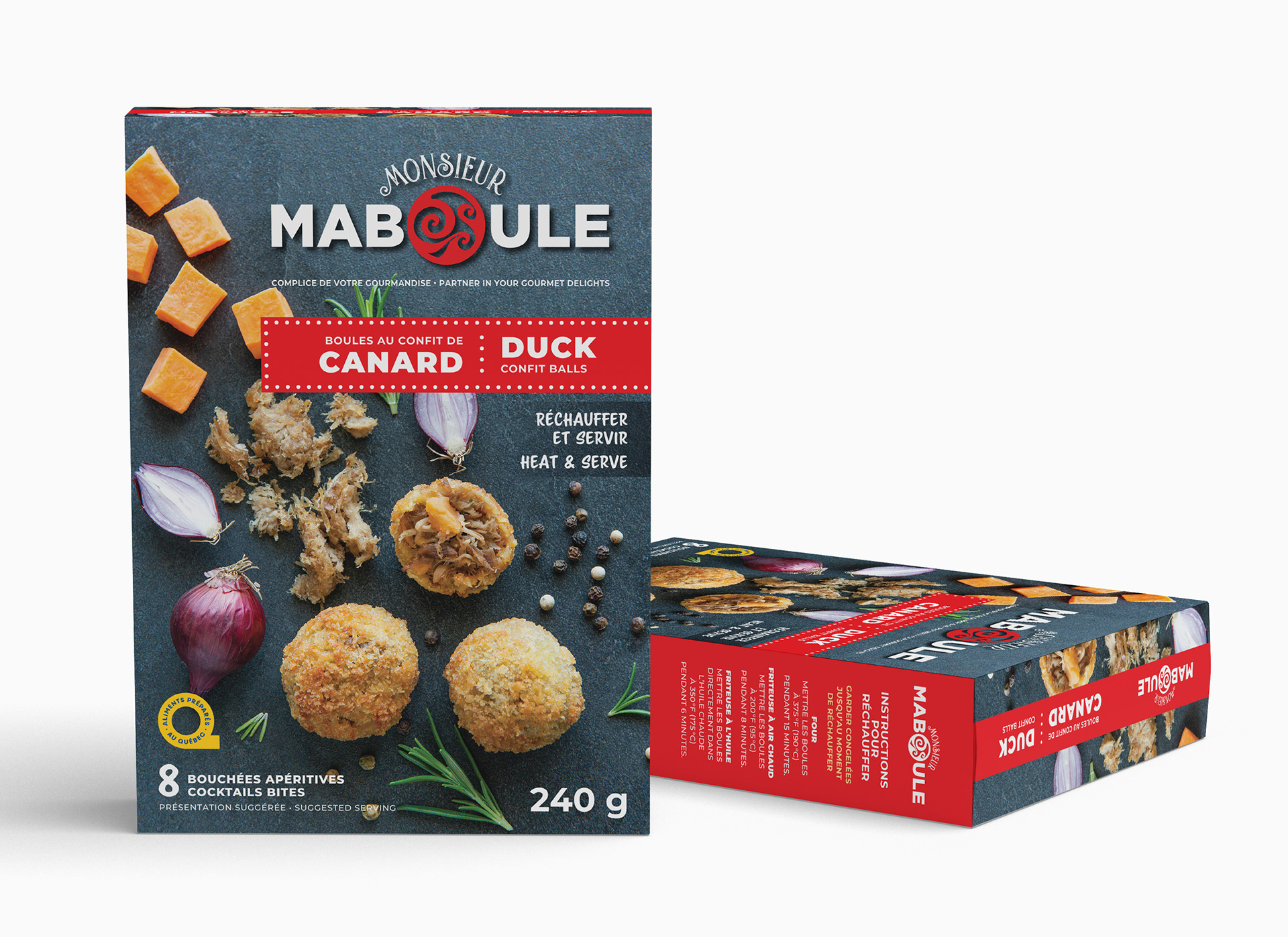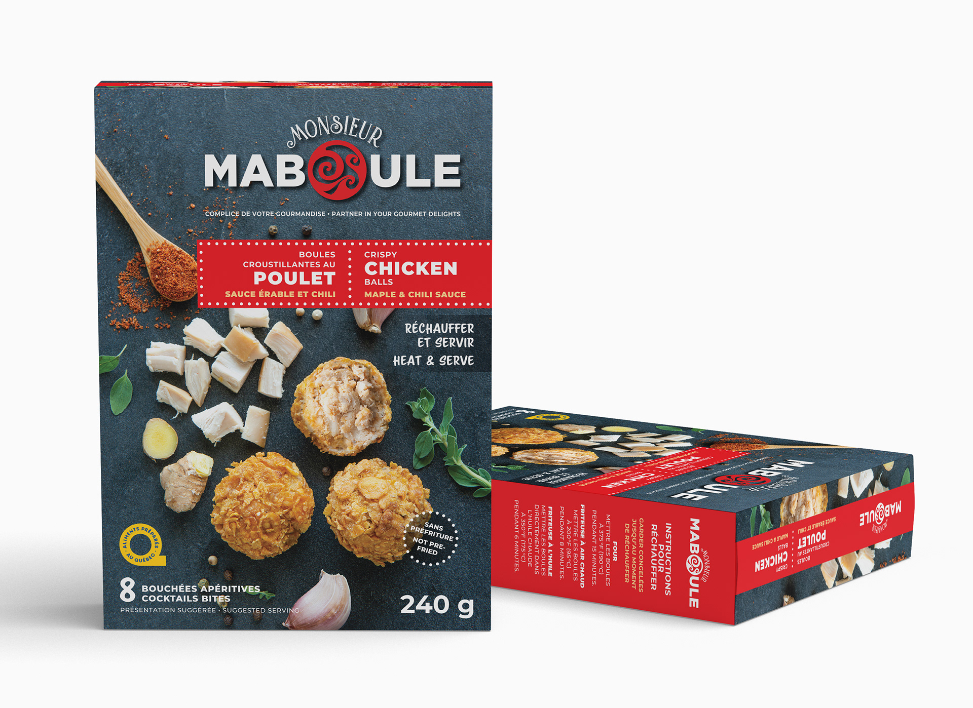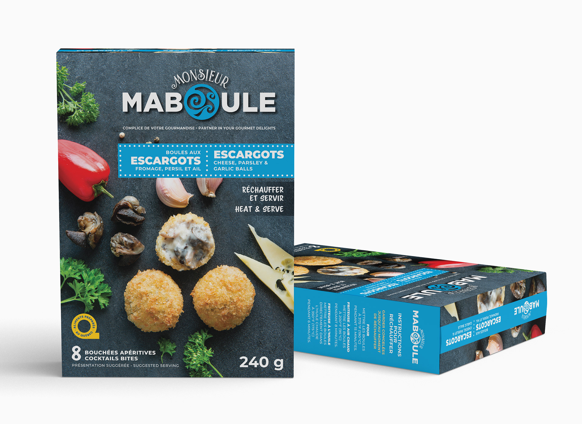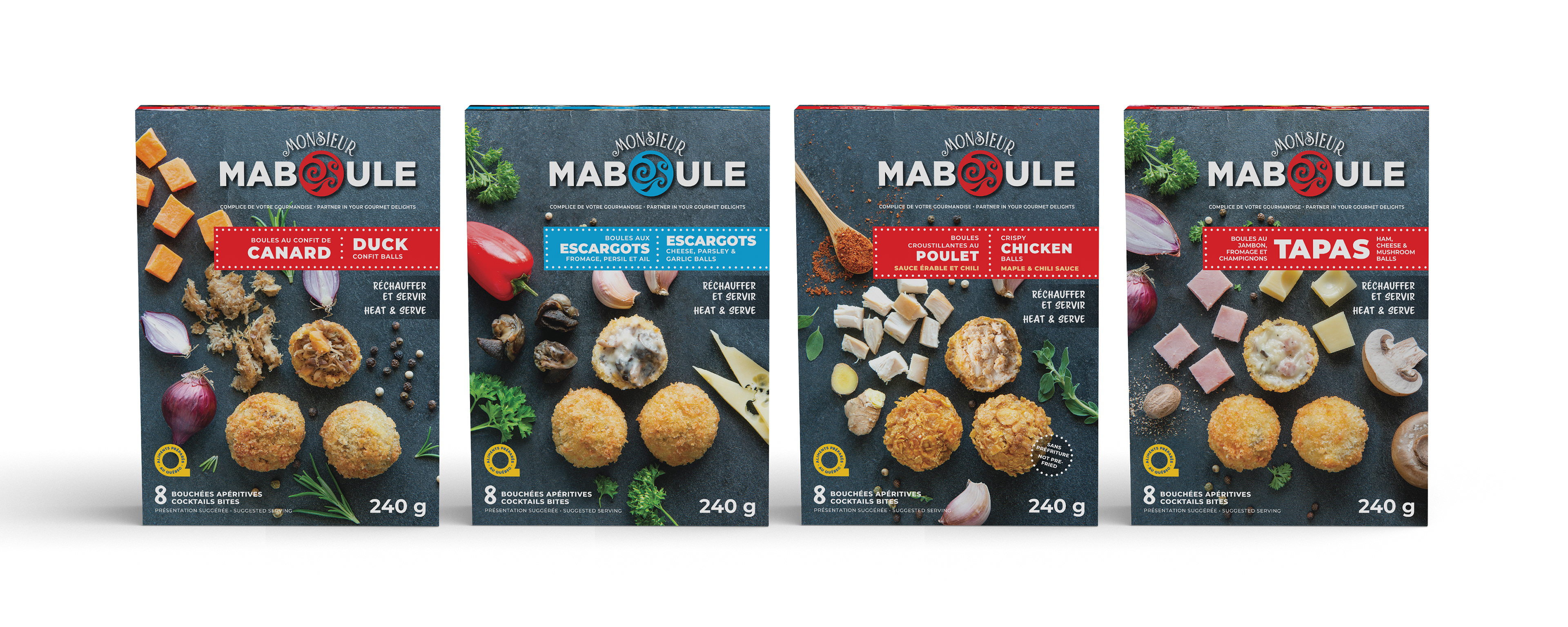 Conception des boîtes pour la gamme de boules apéritives de Monsieur Maboule