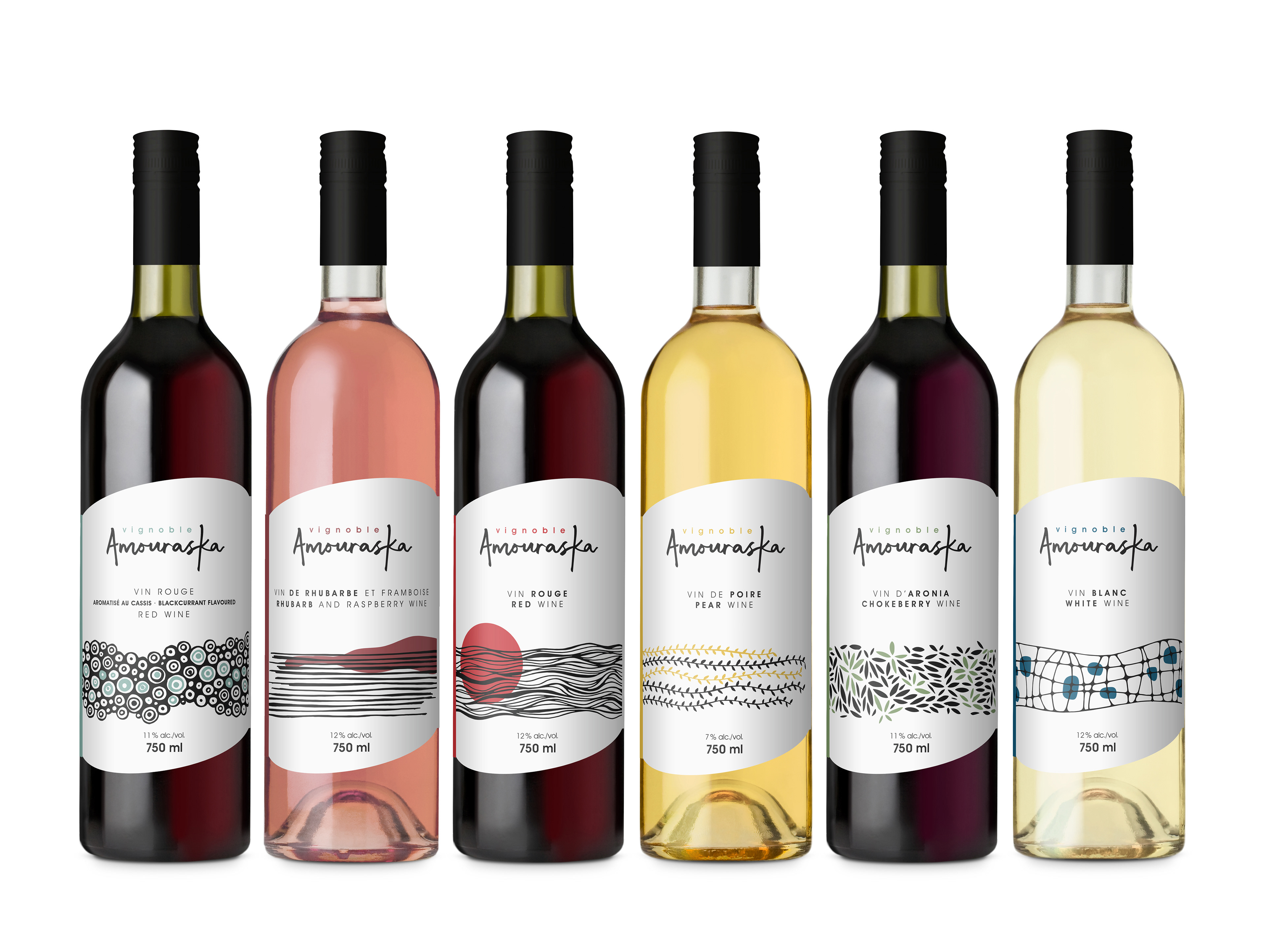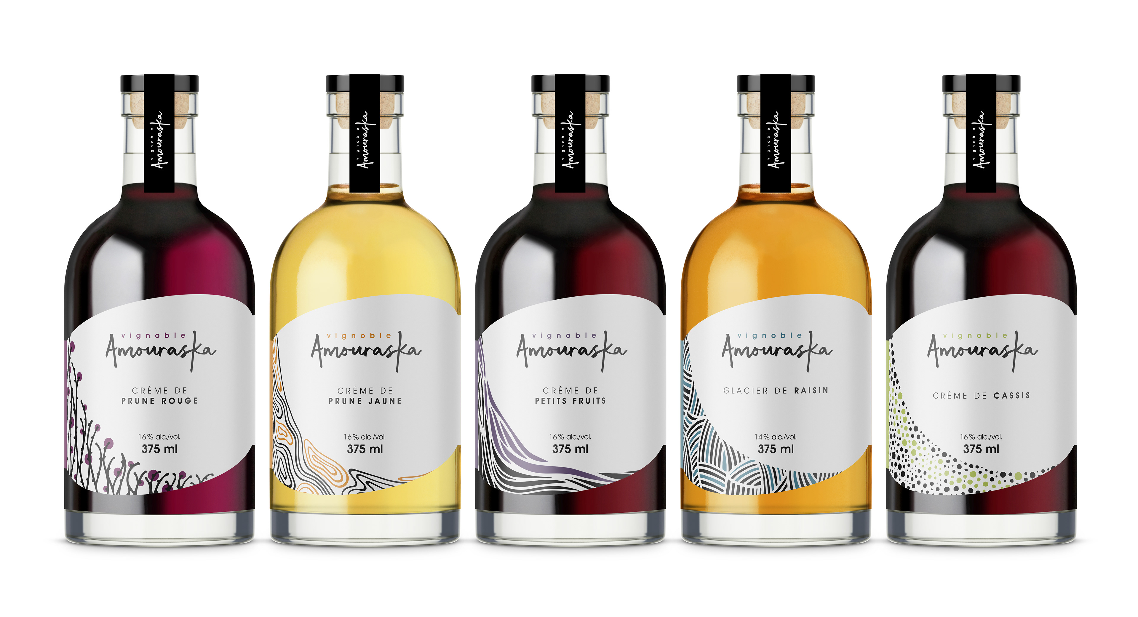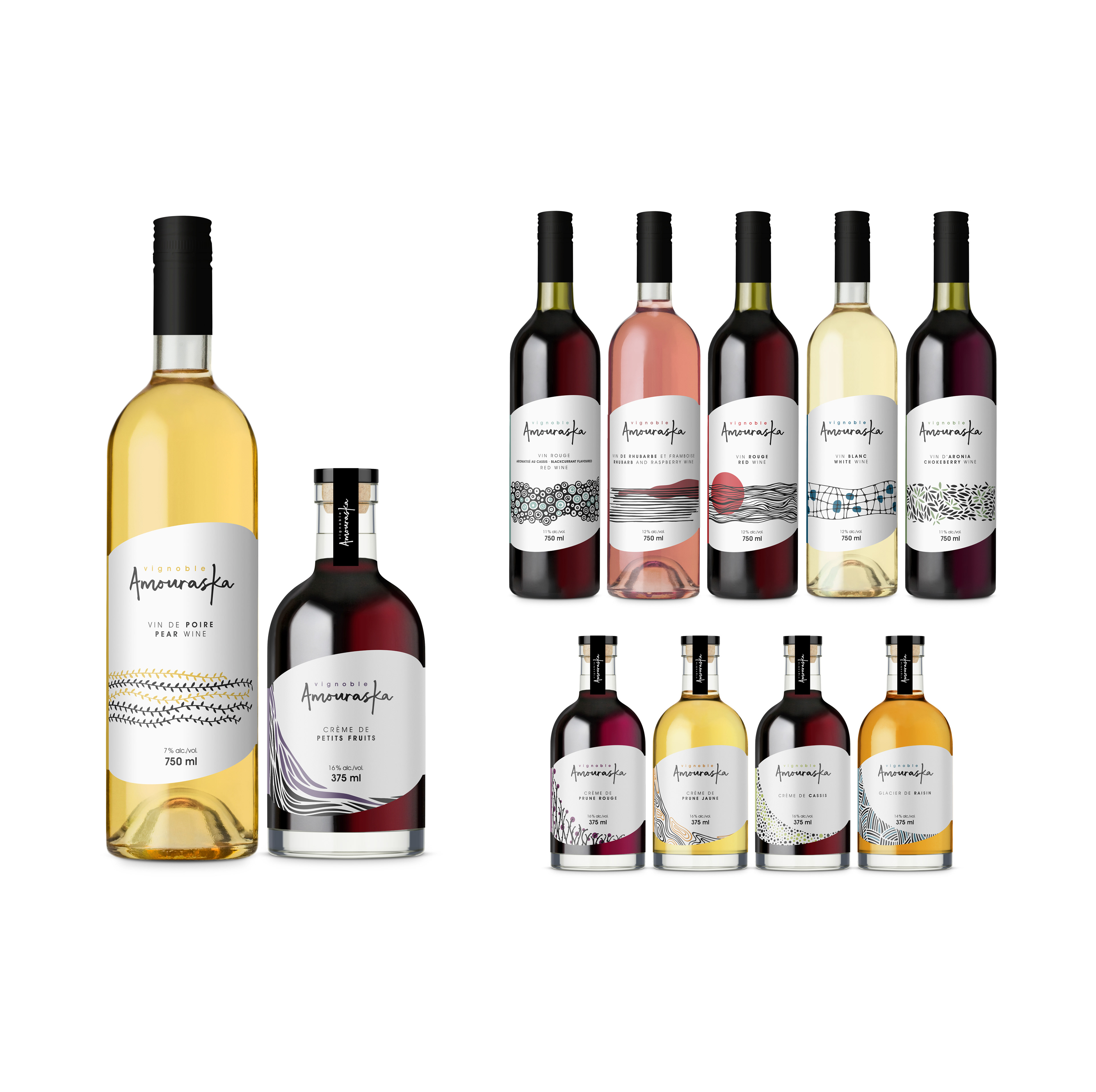 Création de toute la gamme d’étiquettes pour les vins et crèmes du Vignoble Amouraska de la région du Kamouraska